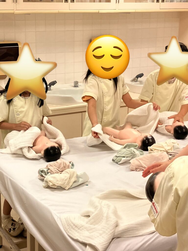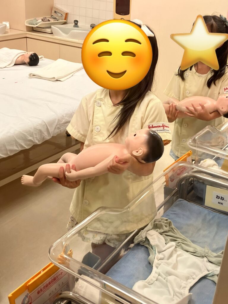 単なるお仕事ごっこではなく、赤ちゃんのお世話をする責任感や優しさも学べる体験です。