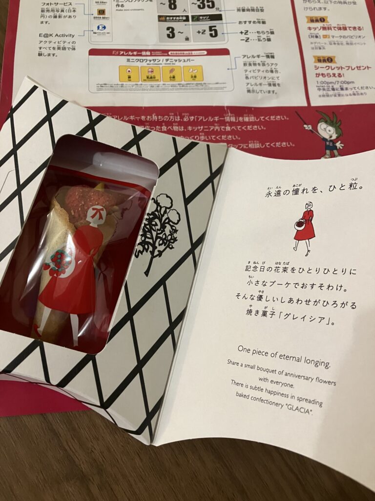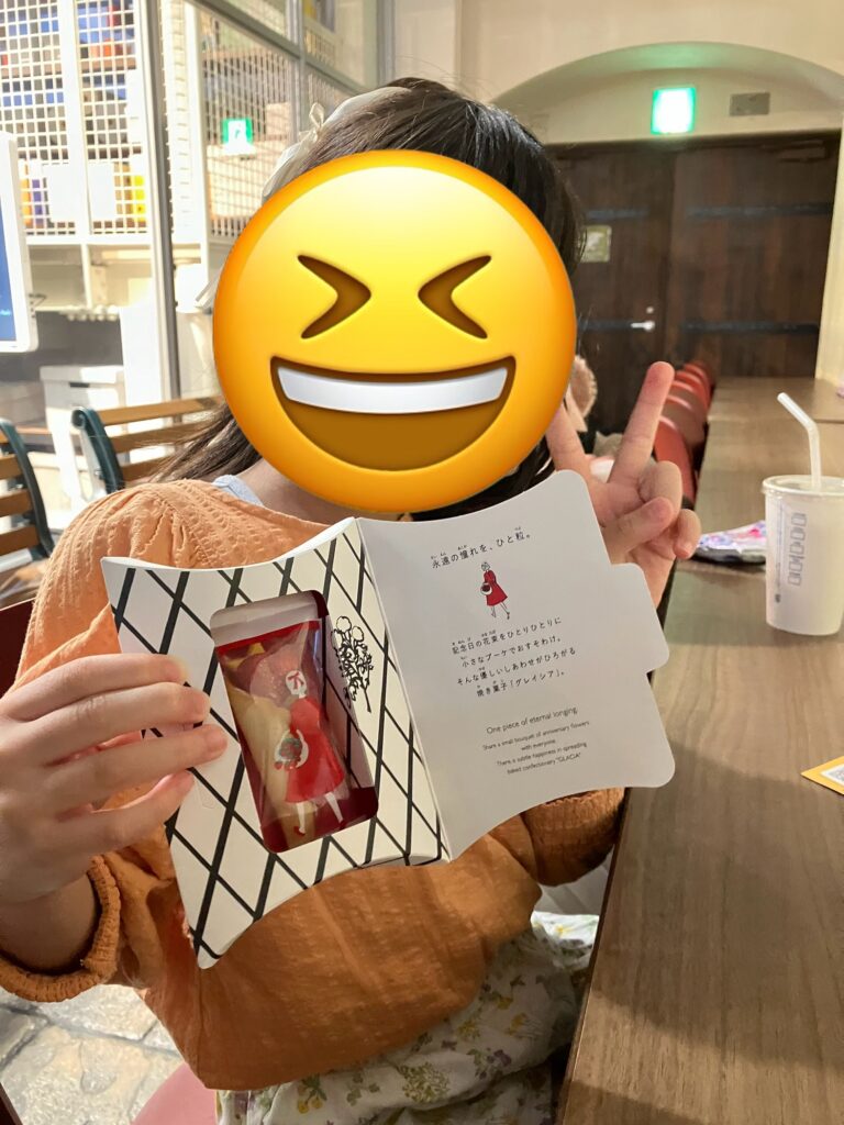 1個は試食用、もう1個はプレゼント用として持ち帰り、誇らしげに「これはママにあげる」と渡してくれました。