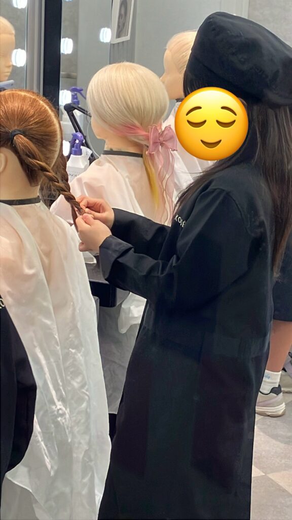おしゃれが大好きな娘は、マネキンの髪を可愛くアレンジできて満足そうでした。