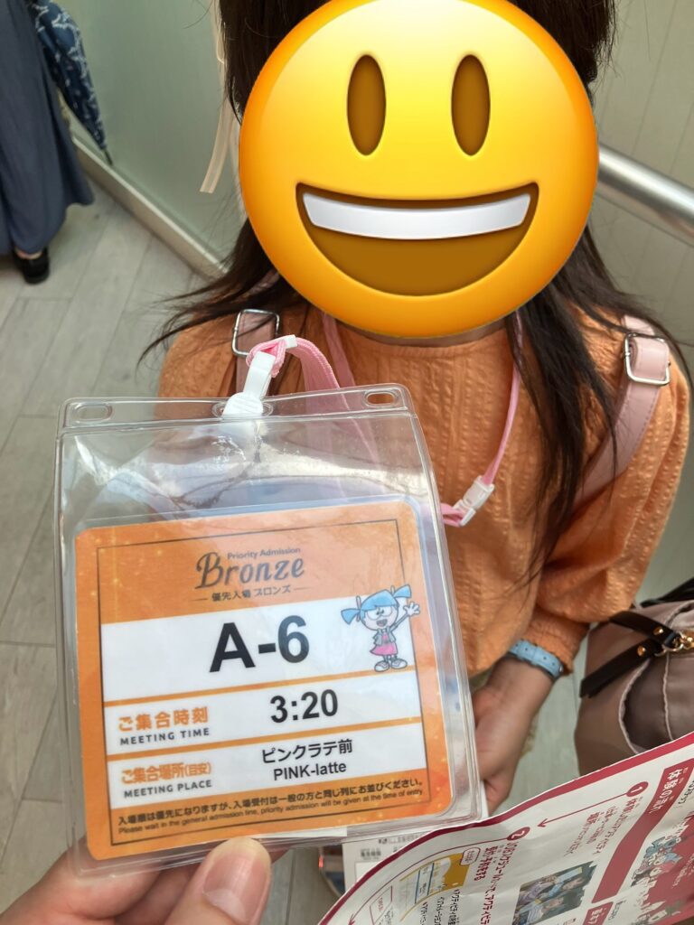 ブロンズは通常料金にプラス500円でダイヤモンドの次に優先入場できる仕組みで、当日の受付順でなはく予約順で入場できます。