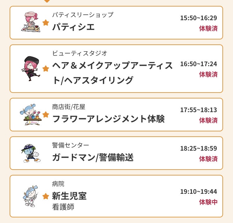 7歳の娘が初めてのキッザニアで体験したのは以下の5つのアクティビティです。